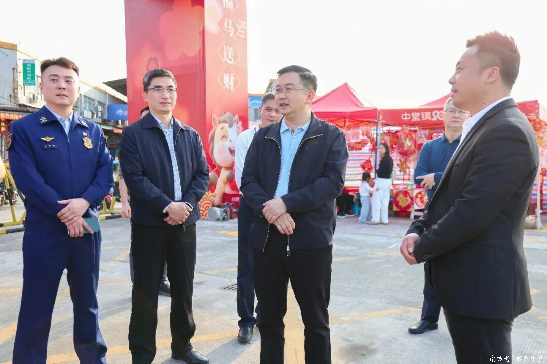 随后,张超一行前往江南农副产品综合批发市场及场内迎春花市,实地检查消防通道是否畅通、消防设施是否完好有效,详细了解食品进货查验、检测、仓储管理及安全值守情况,同时对花市摊位布设、用电安全等方面开展隐患排查。要求市场管理方要严格落实安全责任,严把食品质量关,强化溯源管理和节日物资保障;花市运营方要细化安全防范措施,科学规划疏散路线,配齐配足消防器材,加强值班巡查与交通疏导,全力保障市场及花市安全有序运行。